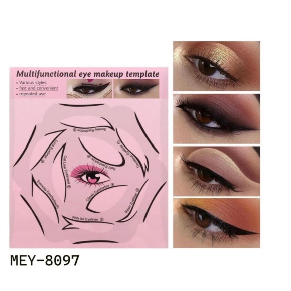 Estêncil Para Delineador de Olhos 9 em 1 usando com qualquer sombra, creme e líquido ou delineador.