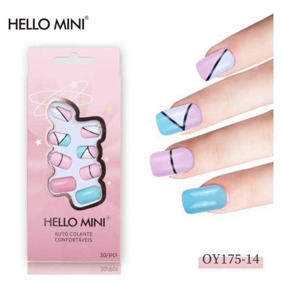O Kit Unhas Postiças Autocolantes da Hello Mini é um Kit com unhas que encaixam perfeitamente em cada dedo de suas mãos.