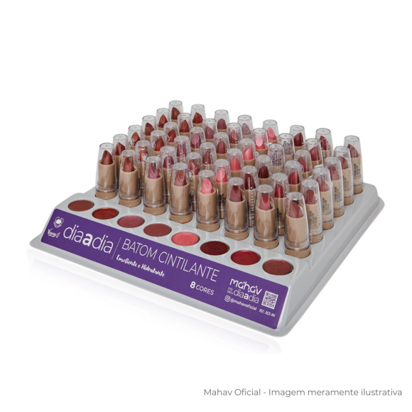 O BATOM CINTILANTE DIA A DIA MAHAV foi desenvolvido com agentes emolientes, que hidratam e disfarçam aquelas linhas finas ao redor e nos próprios lábios.