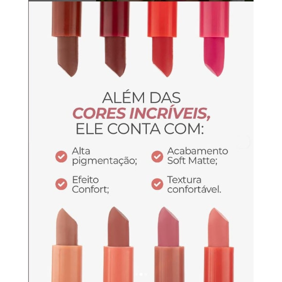 Batom em bala com acabamento soft matte. O Batom Lipcolor colore os lábios de maneira uniforme, além de garantir uma experiência sensorial leve e confortável. Disponível em 8 opções de cores exclusivas, o Batom Lipcolor proporciona fácil aplicação, pigmentação intensa e efeito de longa duração, o produto é ideal para compor os mais diversos looks, já que colore, destaca e define os lábios com rapidez e sofisticação.