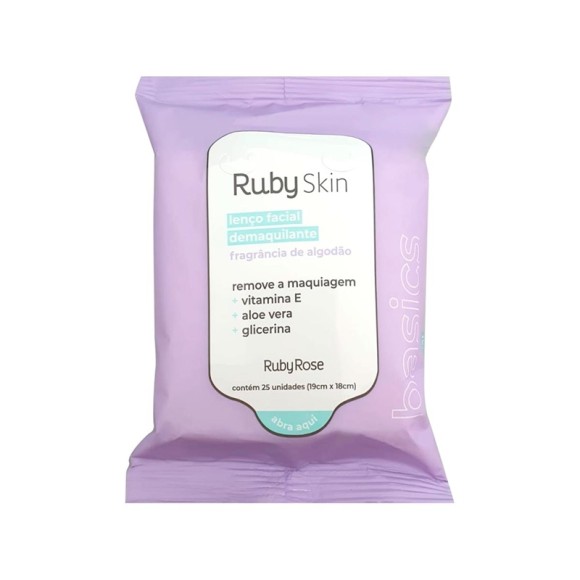 O Lenço Facial Demaquilante Ruby Skin Ruby Rose remove a maquiagem, oleosidades e impurezas da sua pele, deixando-a limpa, fresca, tonificada e hidratada. Os lenços são resistentes e com uma fragância suave de algodão sem deixar a pele irritada, tornando a rotina de limpeza da pele bem mais simples.