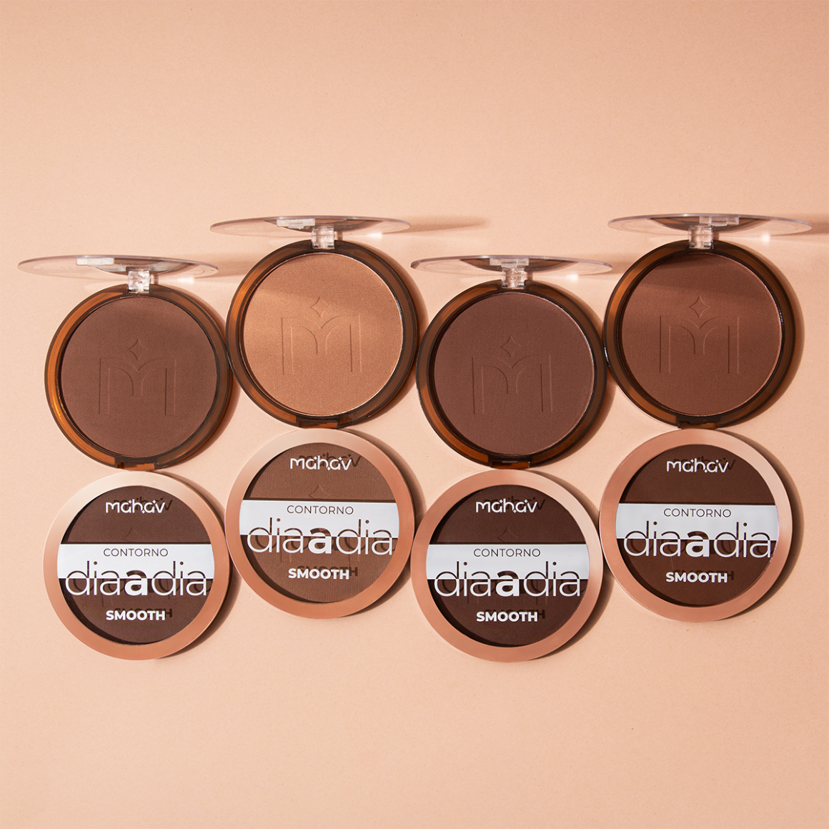 O Contorno Facial em Pó Compacto Smooth Dia a Dia Mahav foi desenvolvido para definir, esculpir e valorizar os traços naturais do rosto com praticidade e sofisticação. Sua fórmula ultrafina permite uma aplicação que esfuma muito bem, não marca e não mancha. Com 4 tonalidades versáteis, sendo duas com subtons quentes e duas com subtons frios, ideal para criar profundidade e realçar os pontos estratégicos do rosto.