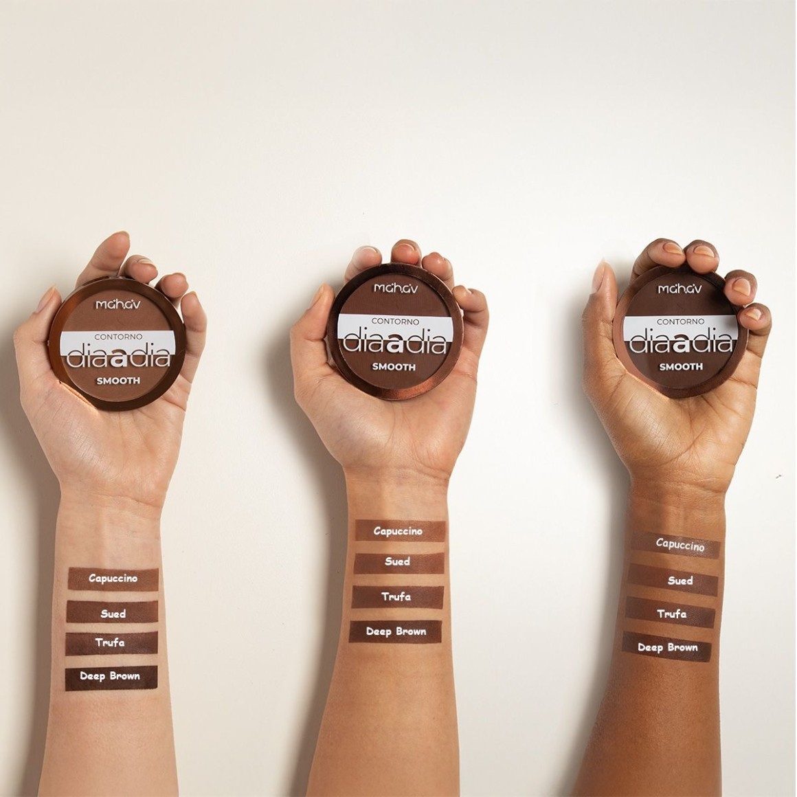 O Contorno Facial em Pó Compacto Smooth Dia a Dia Mahav foi desenvolvido para definir, esculpir e valorizar os traços naturais do rosto com praticidade e sofisticação. Sua fórmula ultrafina permite uma aplicação que esfuma muito bem, não marca e não mancha. Com 4 tonalidades versáteis, sendo duas com subtons quentes e duas com subtons frios, ideal para criar profundidade e realçar os pontos estratégicos do rosto.