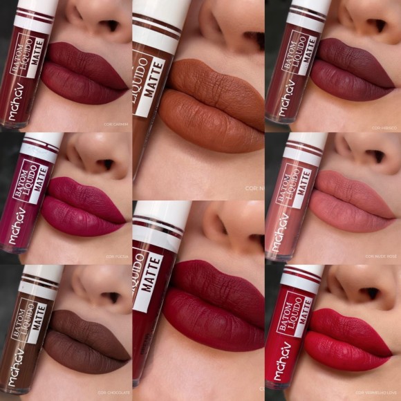 O Batom Líquido Matte da Mahav tem secagem rápida, baixa transferência, ótima pigmentação, cobertura uniforme, fácil aplicação, durabilidade e boa espalhabilidade.