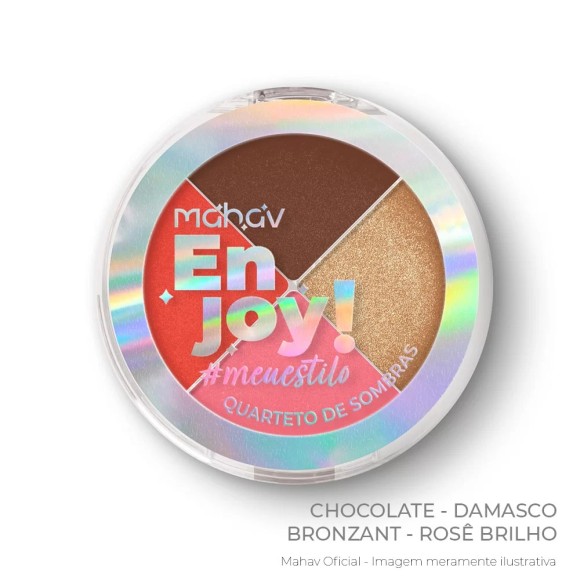Características Técnicas Referência: EQ4-MV-01 Cor 01: Chocolate, Damasco, Bronzant e Rosê Brilho Peso Líquido: 5,5 g Tamanho Aproximado: 7,0 cm Vegano Cruelty-free