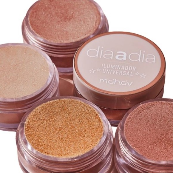 O iluminador mais amado, agora com novas cores, O ILUMINADOR UNIVERSAL MAHAV é um pó solto finíssimo e muito macio, possui tonalidades que combinam, lindamente, com todos os tons de pele, proporcionando um efeito iluminado clássico, luxuoso e poderoso. As delicadas partículas de brilho se fundem à pele, unificando e valorizando os pontos iluminados.