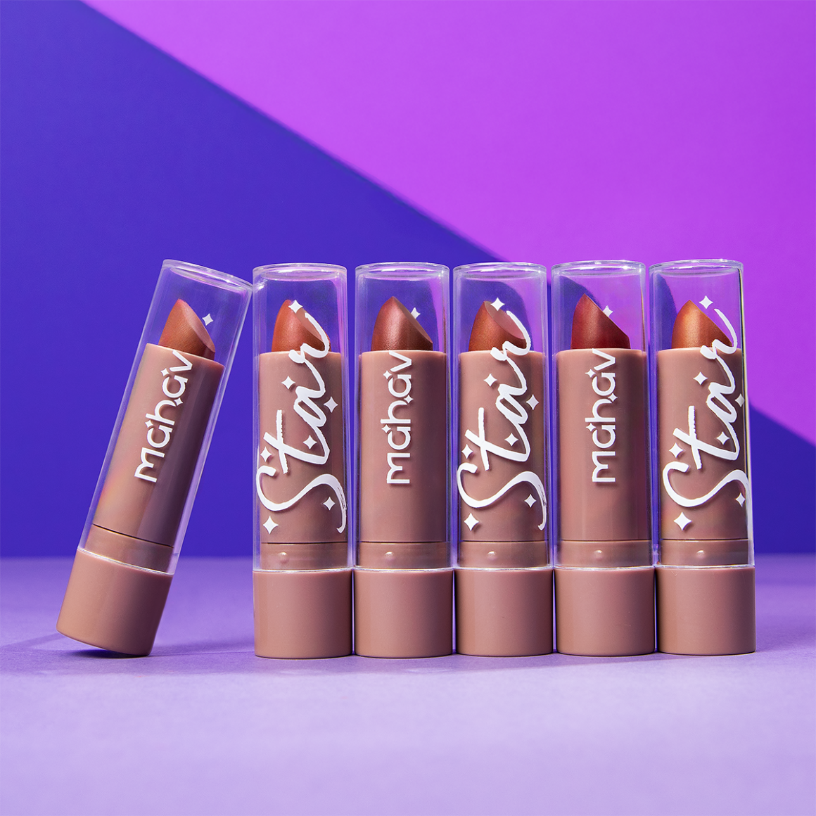 O Batom Bastão Star Mahav oferece textura cremosa e suave que desliza facilmente nos lábios, proporcionando aplicação uniforme e confortável. Com alta pigmentação já na primeira camada, forma uma película fina com cobertura intensa e sensorial confortável. Está disponível em acabamento SOFT MATTE e possui uma cartela com 6 cores clássicas e atemporais.