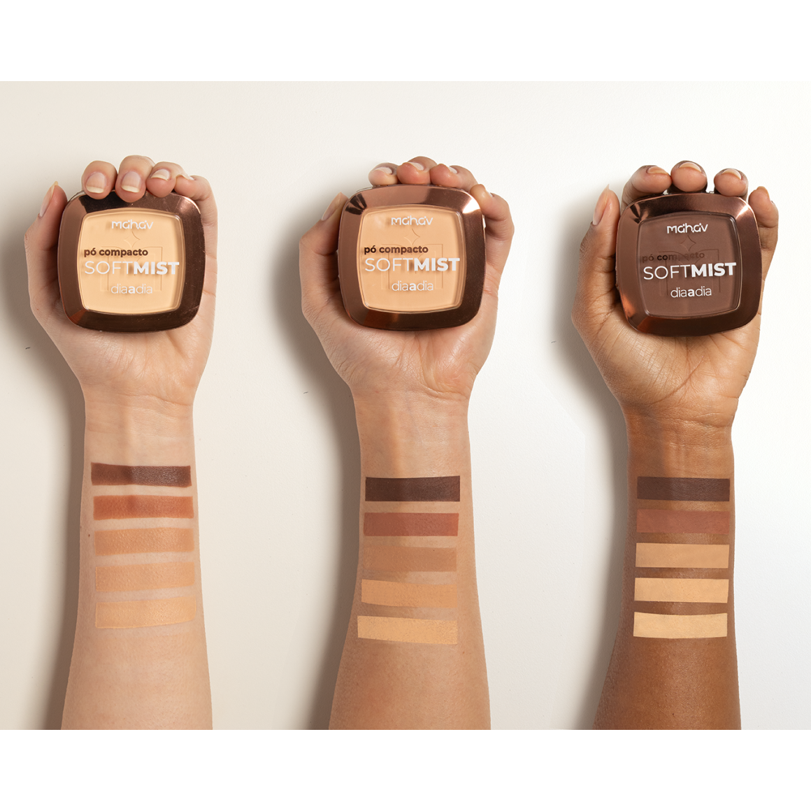 O Pó Facial Compacto Soft Mist Dia a Dia Mahav possui textura fina e aveludada. Sela, matifica, controla a oleosidade e adiciona cor. Acabamento suave e aparência uniforme, sem pesar. Ideal para finalizar a make com naturalidade e conforto. A cartela contém 5 tonalidades, desenvolvidas para atender diferentes tons de pele, entre claros, médios e escuros. Embalagem moderna, funcional e prática, com espelho integrado e esponja fluffy macia, leve e especial para aplicação de pó, ideal para retoques no dia a dia.