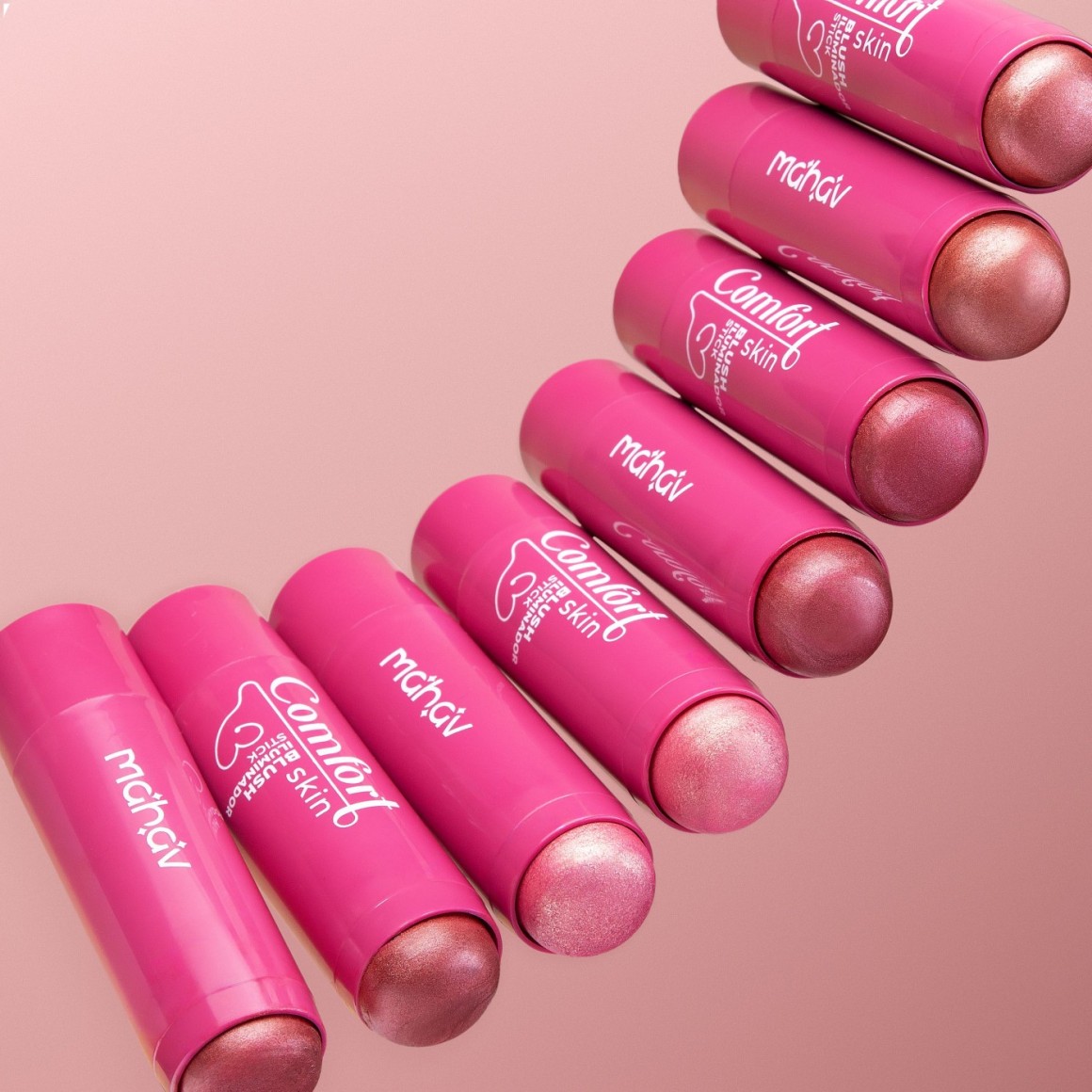 O Blush Iluminador Stick Comfort Mahav no formato bastão, fácil de aplicar e perfeito para levar na bolsa. É blush + iluminador em um só produto, com textura cremosa, toque aveludado, que esfuma perfeitamente e se funde na pele com naturalidade. A aplicação é simples e sem mistério: direto na pele, espalha com os dedos ou pincel. A fórmula constrói camadas, permitindo desde um glow mais leve até aquele efeito mais marcado, que está super em alta. E ainda funciona como sombra ou batom — sim, é versátil nesse nível.