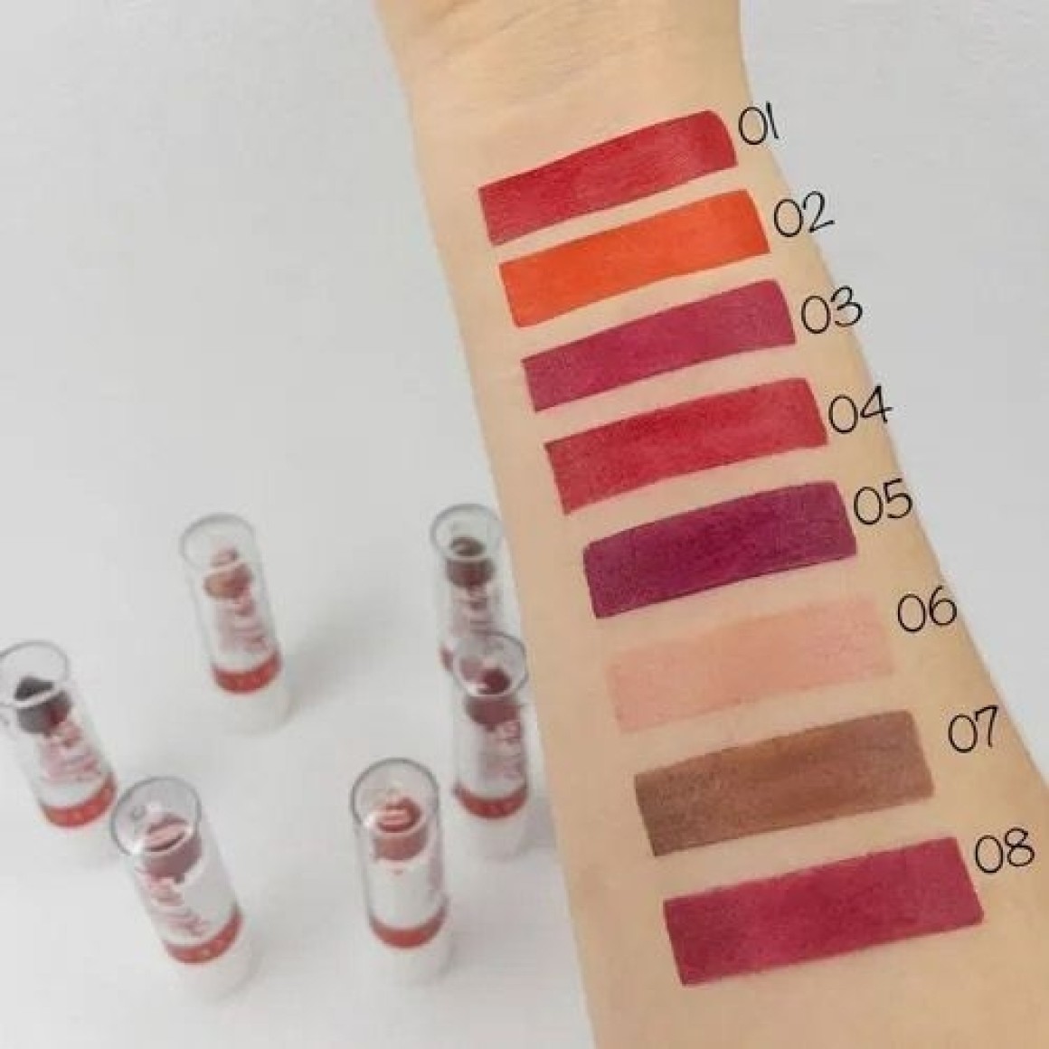 Características Técnicas Referência: 3114.1.1 Contém: Kit com 8 batons Cores: do 1 ao 8 Peso Líquido (Unitário): 3,5 g