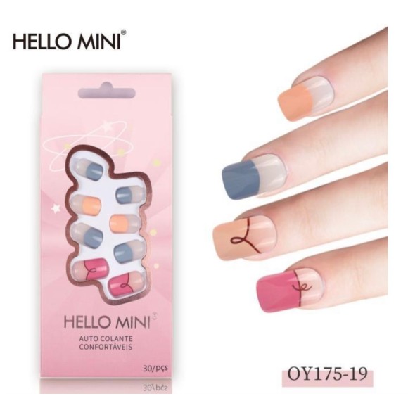 Kit Unhas Postiças Autocolantes c/ 30 Hello Mini OY175-19